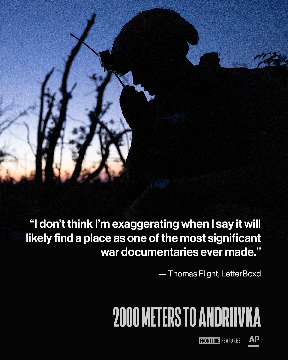 From the Oscar®-winning team behind 20 Days in Mariupol — a haunting look at soldiers fighting for every meter of Ukraine. A film by Mstyslav Chernov. Produced by Frontline Features and The Associated Press. Tickets are on sale now.