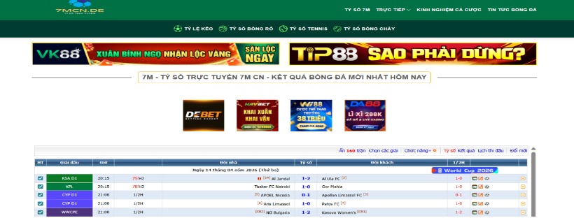 Trang 7M chuyên cung cấp tỷ số bóng đá, KQBĐ chính xác mới nhất. Ngoài ra còn cung cấp các dich vụ: Tỷ Lệ Kèo, Lịch Thi Đấu, Bảng Xếp Hạng... mới nhất . #7m #7mcn #7m_cn #tyso7m #kqbd7m #ketqua7m #7mcnnetim