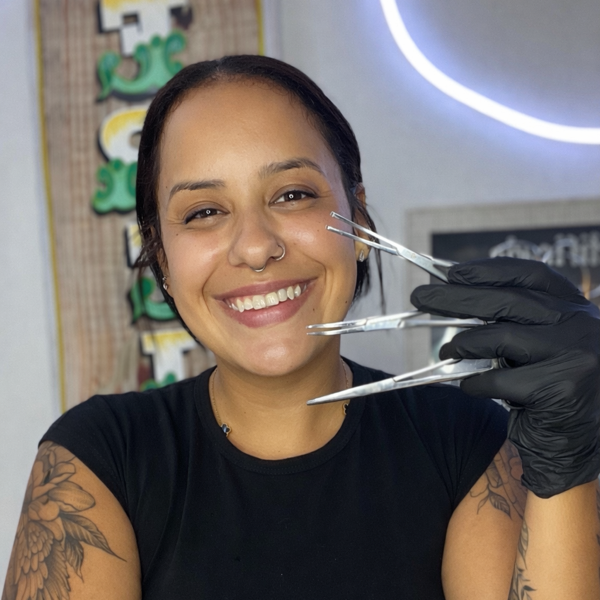 Seja bem-vindo, querido(a) cliente. No nosso estúdio, oferecemos piercings, microdermal e implantes em aço cirúrgico e titânio. Agende via WhatsApp 💖