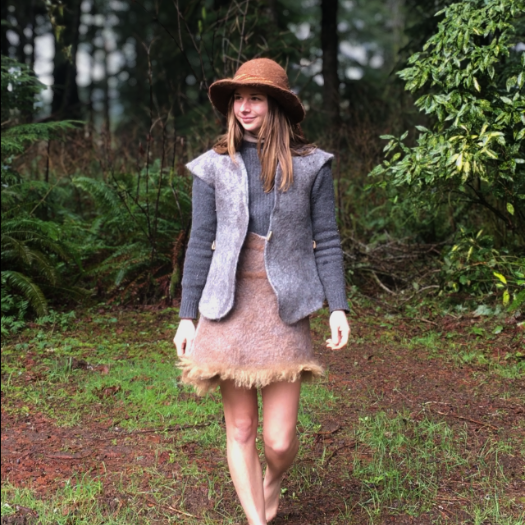 Wet felted hat with handwoven band made of handspun yarn. Hat and bands feature all natural colors of the sheep and alpaca fleeces. Black walnut and sea shell buttons.