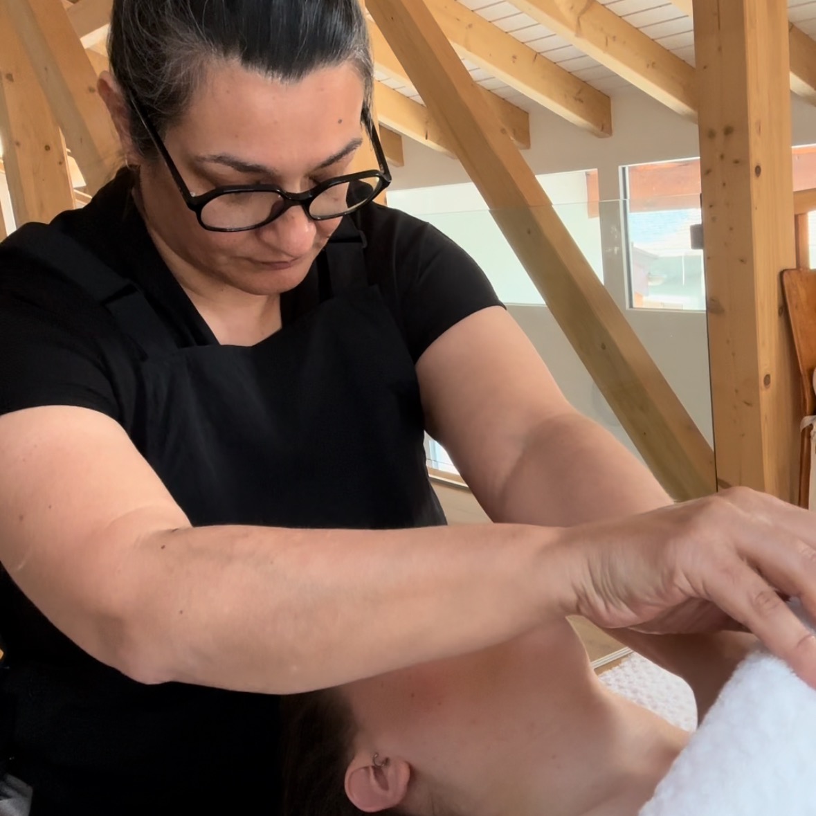J’en me suis formée à plusieurs techniques de massages crâniens et faciaux (dont le Kobido japonais, les massages indiens du cuir chevelu et des approches somatiques du visage et du crâne) que j’ai ensuite réorientées vers une pratique thérapeutique.