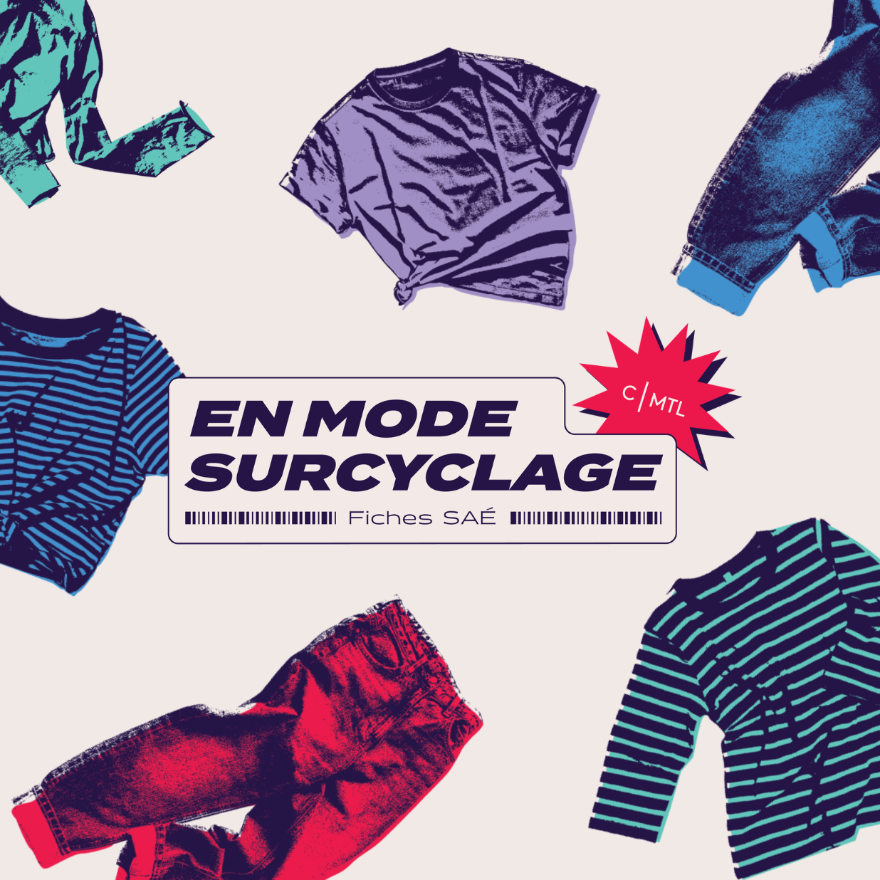 Dans le cadre du projet « En mode surcyclage », Concertation Montréal a conçu du matériel pédagogique pour le programme Culture et citoyenneté québécoise (CCQ), destiné aux enseignant.e.s de secondaire 4 et 5. Ce contenu permet d’engager les élèves dans une réflexion critique sur la consommation vestimentaire.