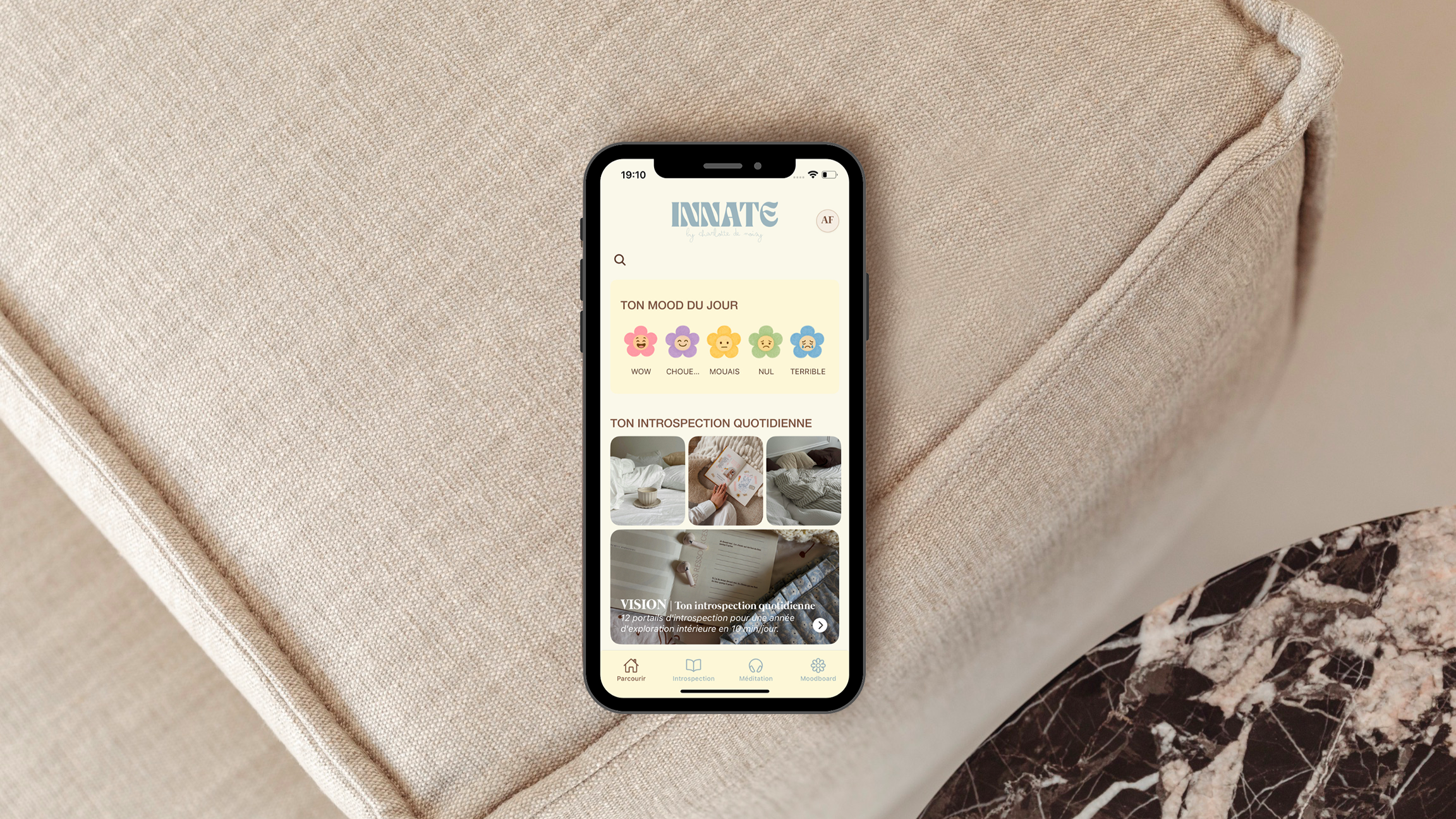 Mood tracker · Introspection · Journaling ciblé · Méditations actives & passives d'activation énergétique