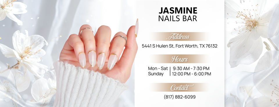 Welcome to Jasmine Nails Bar — where style meets relaxation and every detail is designed to pamper. Located conveniently at 5441 S Hulen St in Fort Worth, our salon has quickly become a local favorite for those who expect more from their nail experience. Our mission is simple: make you feel as beautiful and confident as you truly are. nail salon Fort Worth