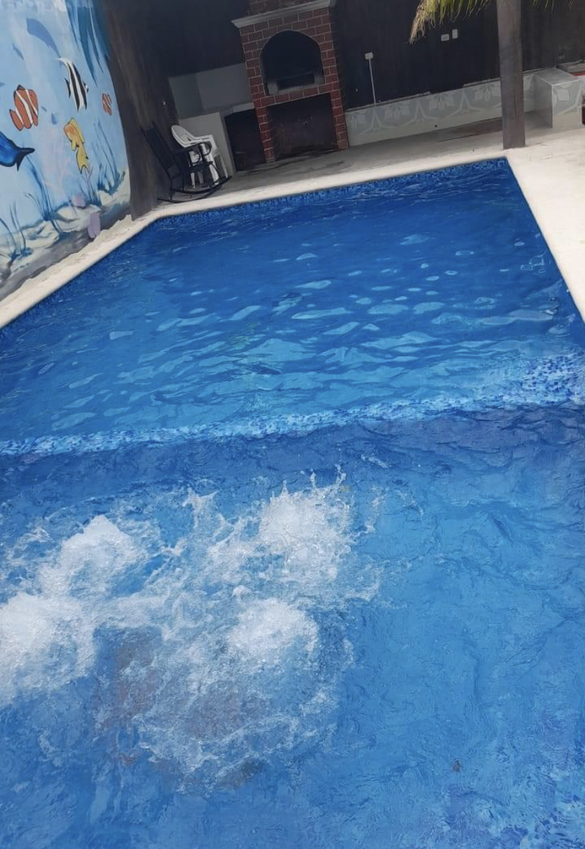 Ideal para tus eventos! Con capacidad para +80 personas. ✅3 baños H & M ✅una habitación con 2 camas + TV y aire acondicionado ✅Balcón ✅área de asador ✅piscina con luces led, cascada y burbujas en chapoteadero ✅cocina con fregadero ✅refrigerador ✅hielera ✅1 mesa con 5 sillas