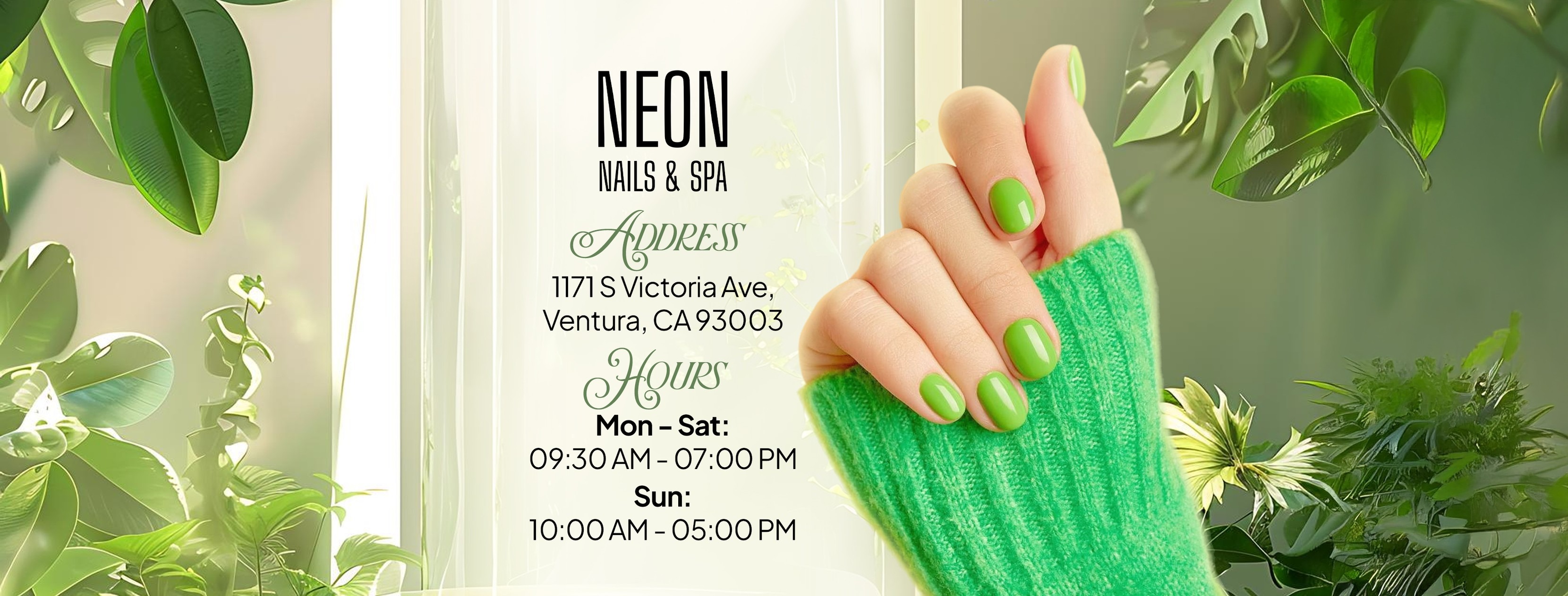Neon Nails & Spa on 1171 S Victoria Ave, Ventura, CA 93003. We specialize in detailed, personalized nail services crafted with clean products and a gentle touch