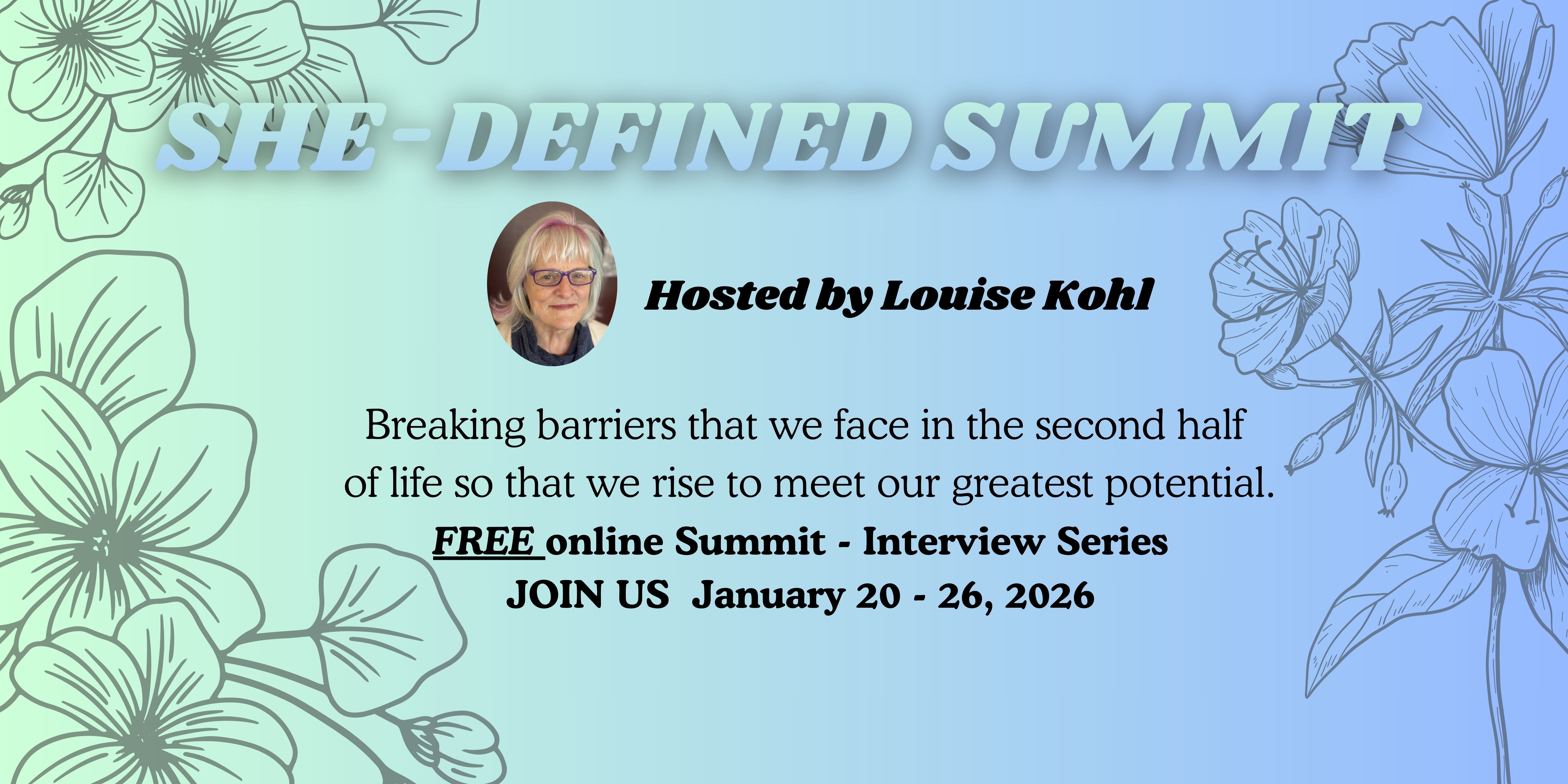 At the SHE-Defined Summit, you’ll experience honest, heart-centered conversations created for women navigating the second half of life. Over seven days, a curated group of experts share practical, encouraging insights around identity, empty nesting, finances, health, relationships, resilience, and designing a meaningful next chapter. These aren’t “fix yourself” talks, but perspective-shifting conversations that help you uncover limiting patterns, reconnect with your values and strengths, and see what’s possible when you redefine life on your own terms—with clarity, confidence, and purpose.